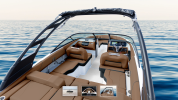 2026 Regal LS2 Ultimate, black with saddle brown interior, 280 HP Volvo V6, Power Tower, Dual Screen. NOTE: online pics show sea grass matt flooring but actual boat to have custom Seadek Flooring to compliment colour scheme.