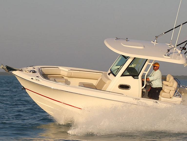 With Whaler’s legendary unsinkable hull, a perfected interior fishing layout, fully integrated Simrad® technology, and single or twin Mercury® outboards, the 250 Outrage is a tour de force in the world of offshore angling. The center console design provides commanding visibility and control, and forward lounges provide comfort for those that want to relax on board. There’s no limit to what this 25-ft. offshore center console boat can do, so bring your biggest expectations and live out your most exciting adventures.